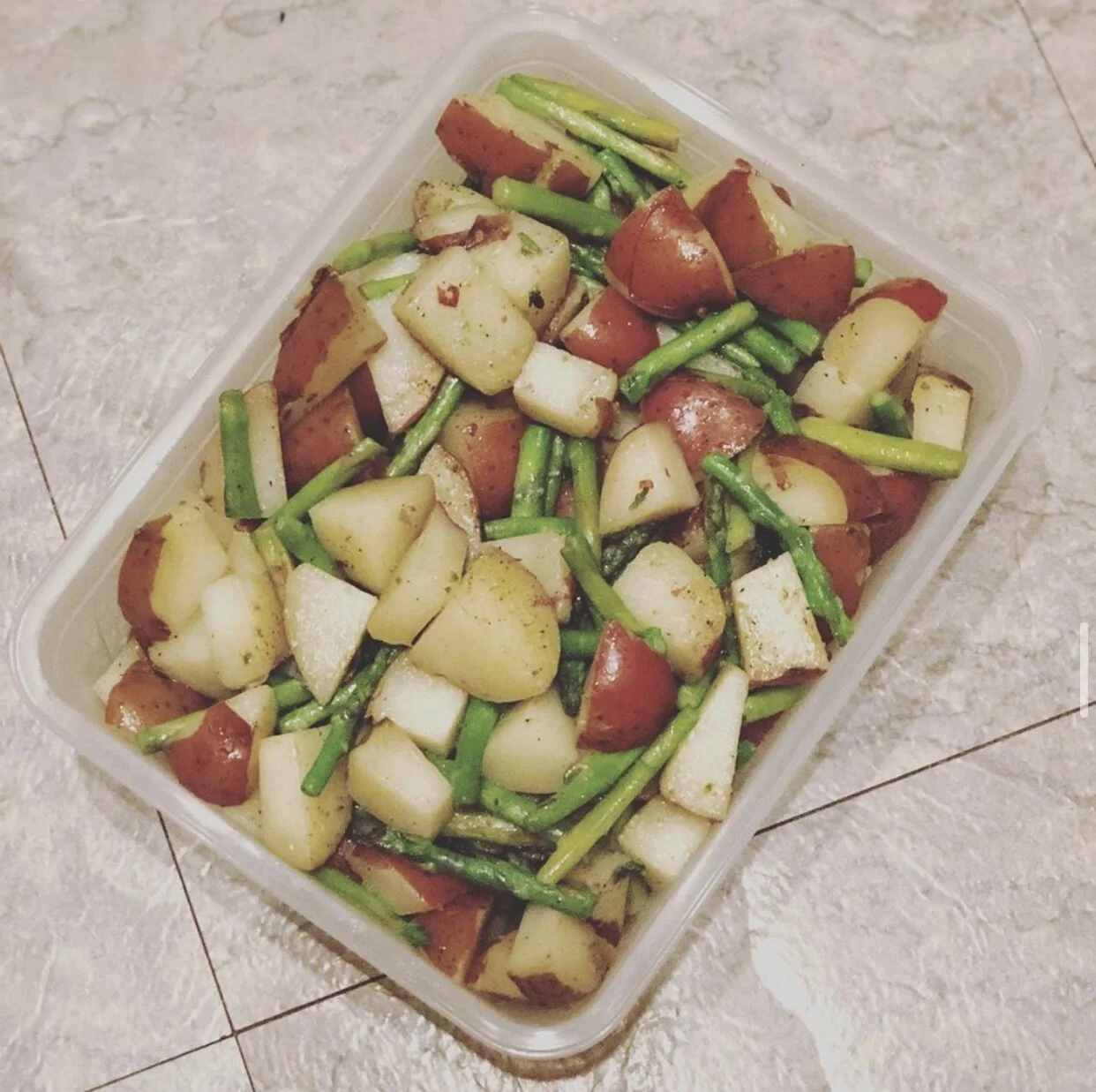 Cook Red Potatoes and Asparagus together, for an additional 5 minutes.